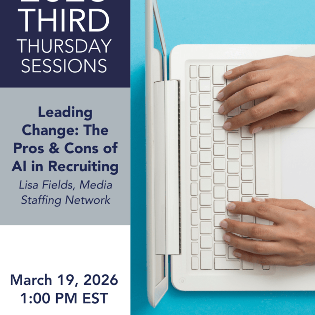 “Leading Change: The Pros & Cons of AI in Recruiting” presented by Lisa Fields, Media Staffing Network Thursday, March 19, 2026 at 1:00PM VAB members can register at no charge here. Use promo code “NASBA26” to make the balance due $0 at…