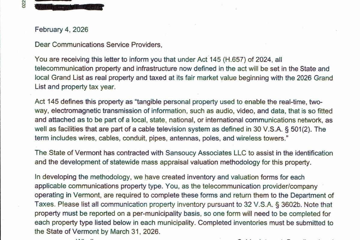 Vermont Radio & TV Station leaders, It was brought to the VAB’s attention on Friday, February 13th that some stations had received a letter in the mail from the Vermont Department of Taxes informing them of a new state tax…