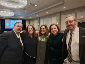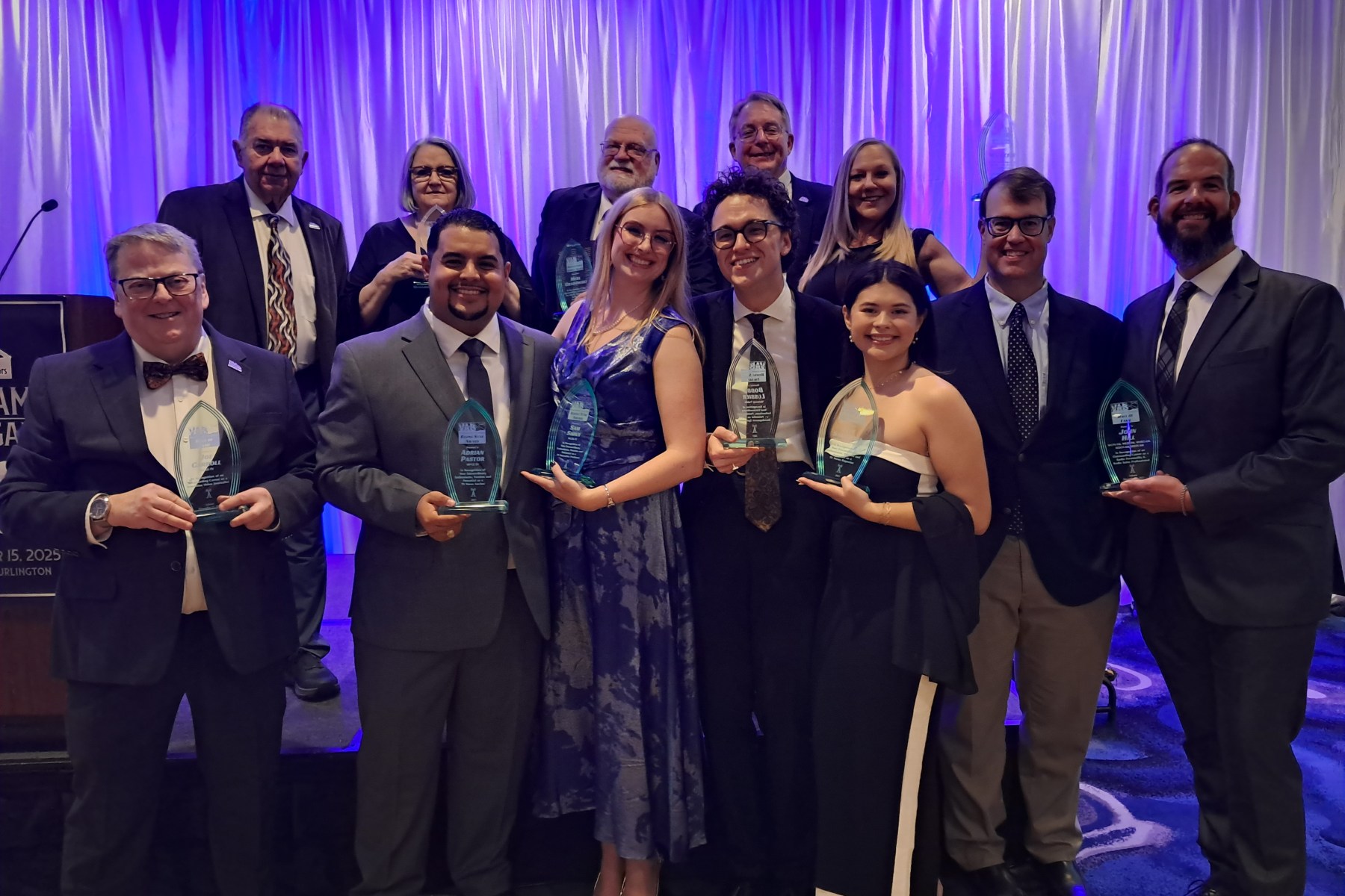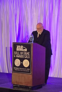 Saturday, November 15, 2025, 230 VAB members and their guests enjoyed a night of eating, drinking, socializing and celebrating at the “Platinum & Pearls” themed VAB Hall of Fame & Awards Gala at The DoubleTree by Hilton in South Burlington. All VAB Hall of Fame members in attendance were bestowed with a commemorative pin sybolizing their membership in this elite group of broadcasters: