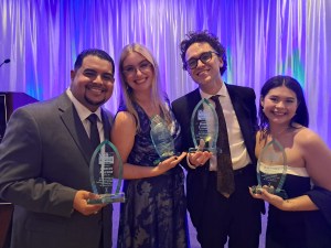 Four rising star awards were given to (R-L): Adrian Pastor (News Reporting), Sam Shinn (Executive Producing), Bobby Lussier (Development) and Lily Sakaniwa (News Reporting)