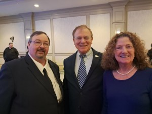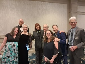 Terry Jaye accepted the Alan Noyes Community Service award on behalf of WSYB whose annual Christmas Fund raised $64,000 last year, Peg Doolin accepted the Snyder Teffner Award for excellence behind the scenes in a support role, Merl Grabowski accepted a Distinguished Service award for his 40+ year career in radio and WXXX-FM (95 Triple X) received the Broadcaster of the Year award, which was accepted by air personality Mel Bechtel on their behalf: